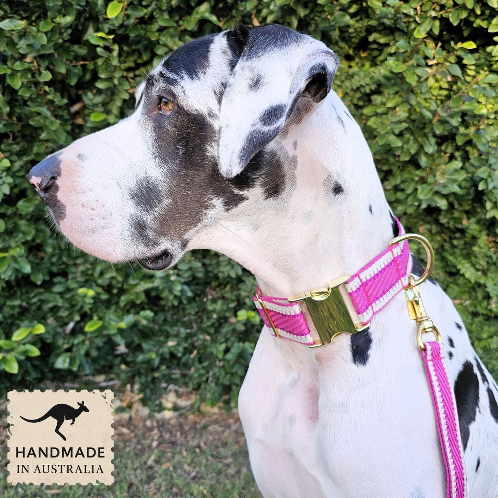Our luxury Hot Pink St Tropez Dog Buckle Collar is handmade by us in Brisbane and includes:
