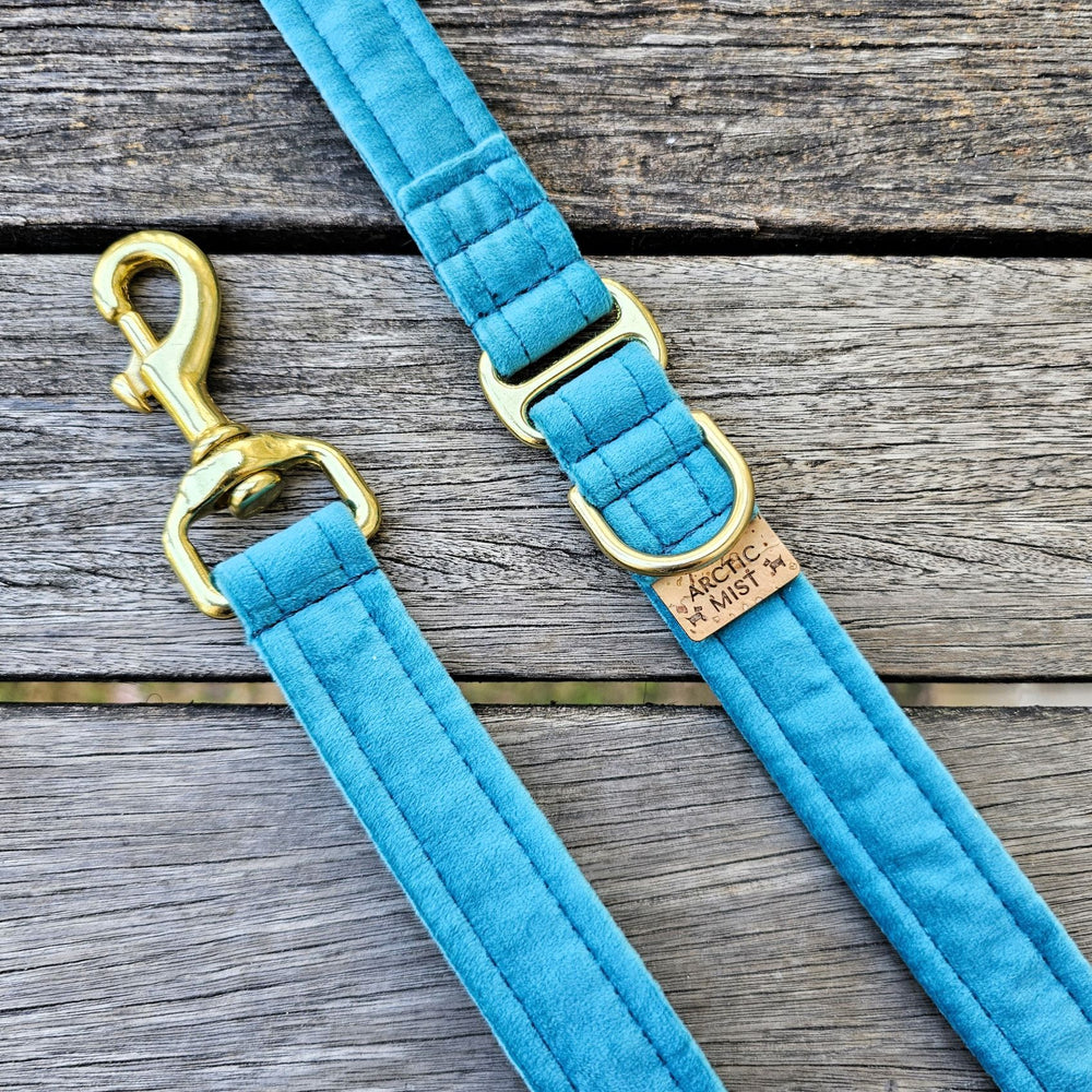 Luxury Jade green Velvet dog lead. Handmade by us in Brisbane and include: