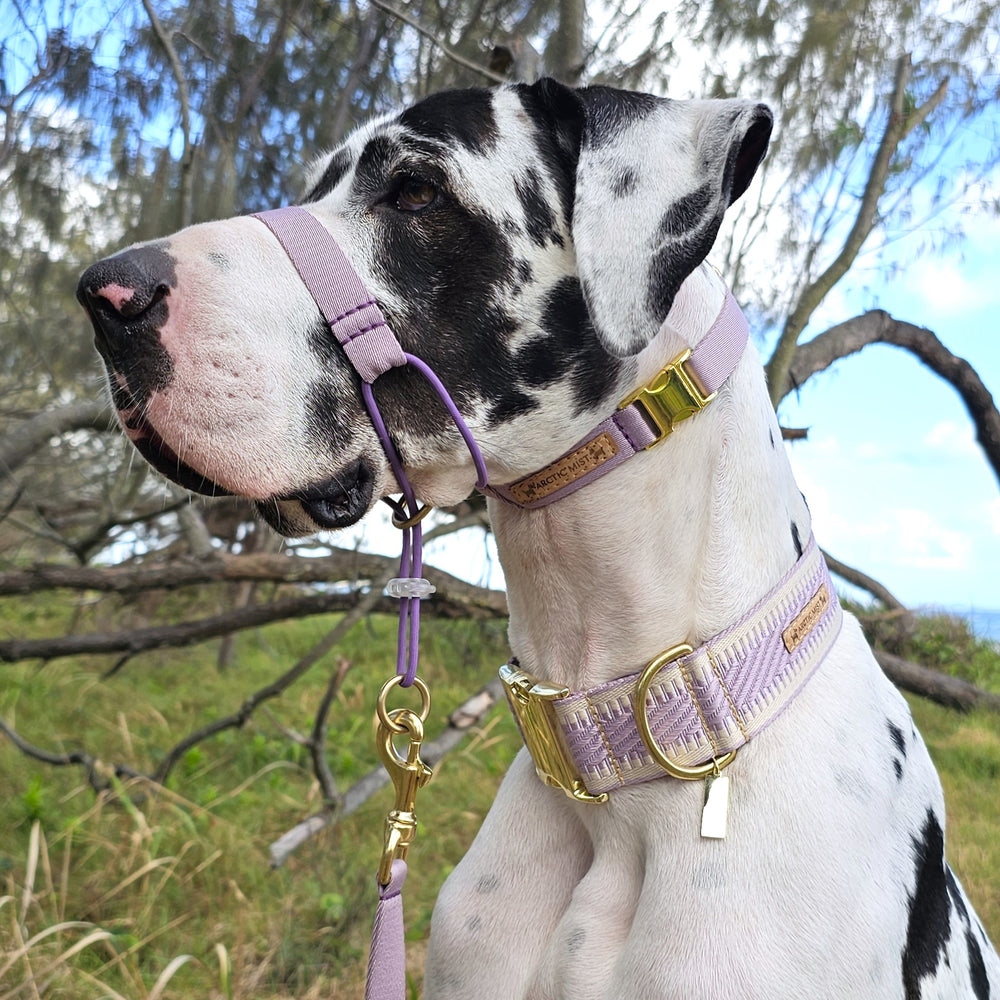 Handcrafted in Brisbane from soft yet durable polyester twill webbing and equipped with load-rated solid brass hardware, our complete training halter combines reliability, comfort, and style for your dog.