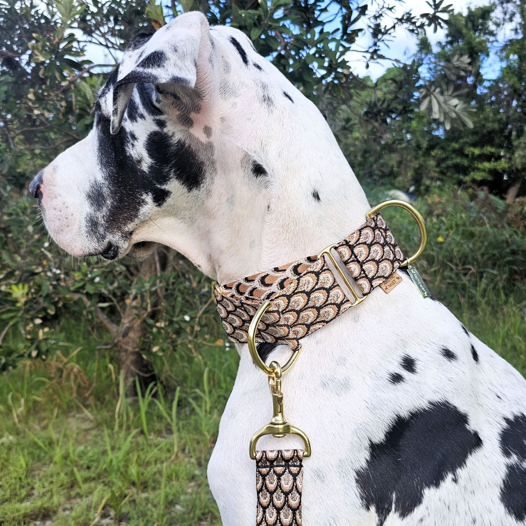 Our Adjustable Monte Carlo Martingale Dog Collar is designed to slip over your dogs head, and will tighten if they pull while walking or try to slip out of the collar.