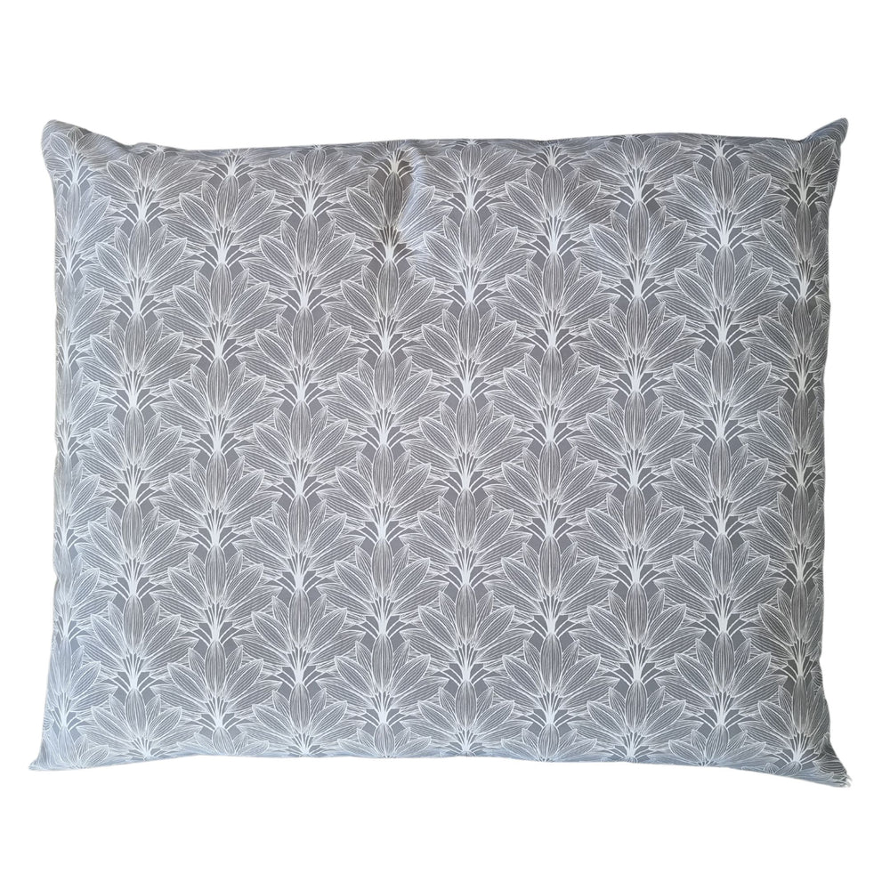 The Palm grey outdoor bed is made from a weather resistant polyester canvas. It features a grey canvas with palm pattern on one side. This bed is in stock and available in size Medium (pictured bed is X-Large):