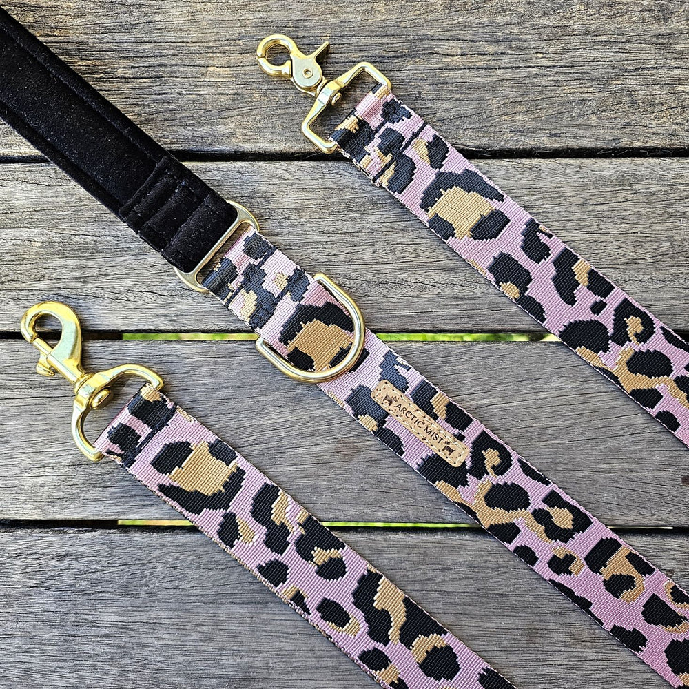 Our blush leopard statement leads are made from a durable 38mm wide nylon blend webbing, and solid brass hardware with an anti-oxidation treatment, perfect for any adventure!