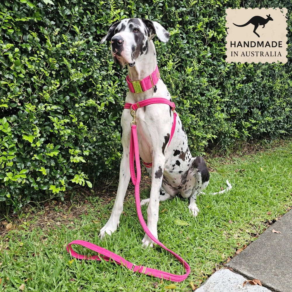 Hot Pink Luxury Velvet dog lead. Handmade by us in Brisbane and include: