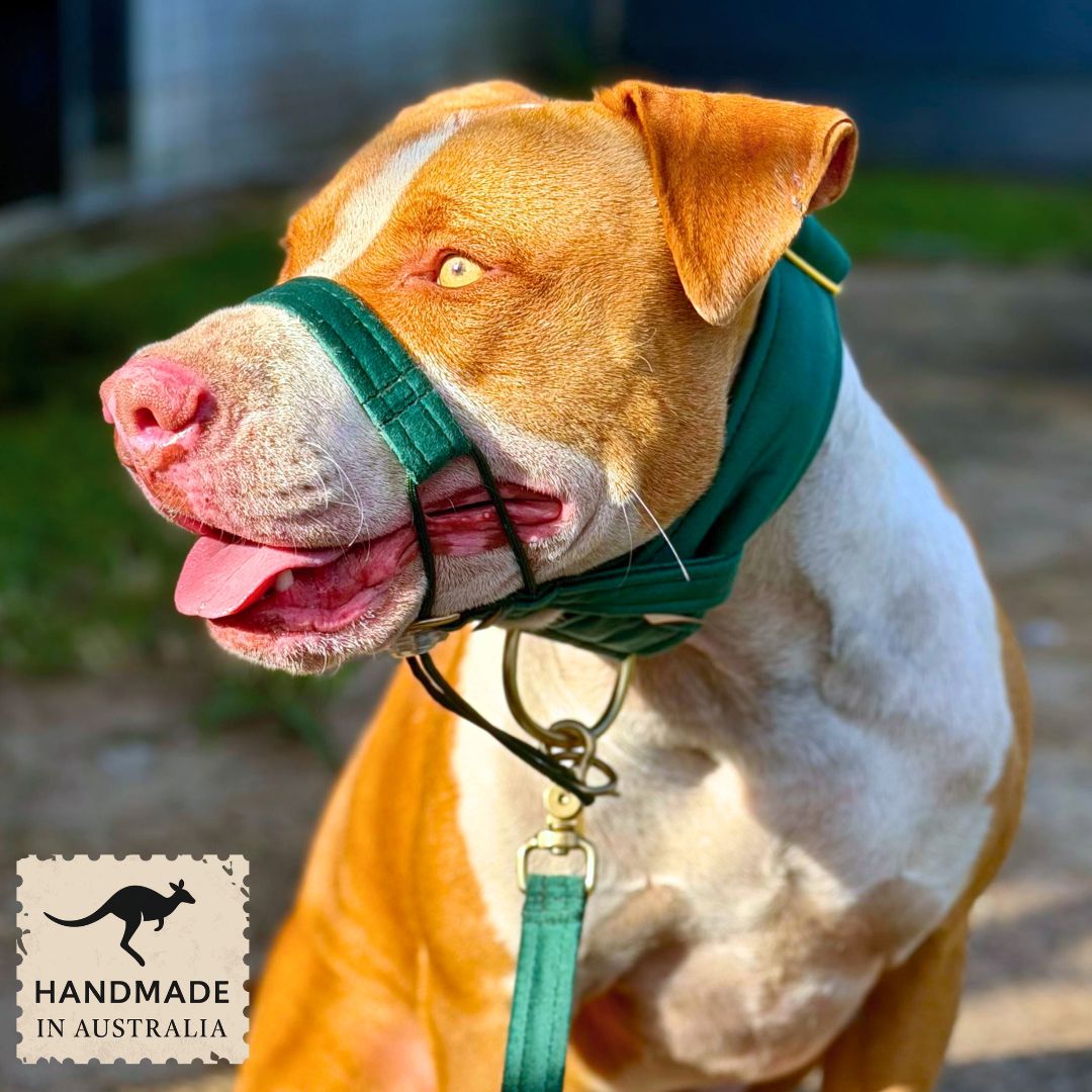 Our luxury velvet Head Halter Attachments can be added to any buckle collar to convert a normal collar into a head halter (Note: cannot be used with martingale collars or slip collars). The head halter attachment simply slides onto your dogs collar and can be removed when not required. These are our very own design (Patent pending PCT/AU2023/050851) and unlike other halters on the market.