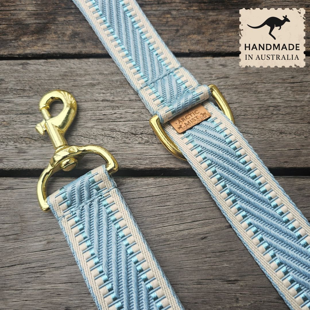 Our St Tropez Statement Leads are made from a durable 38mm wide polyester webbing, and solid brass hardware with an anti-oxidation treatment, perfect for any adventure!